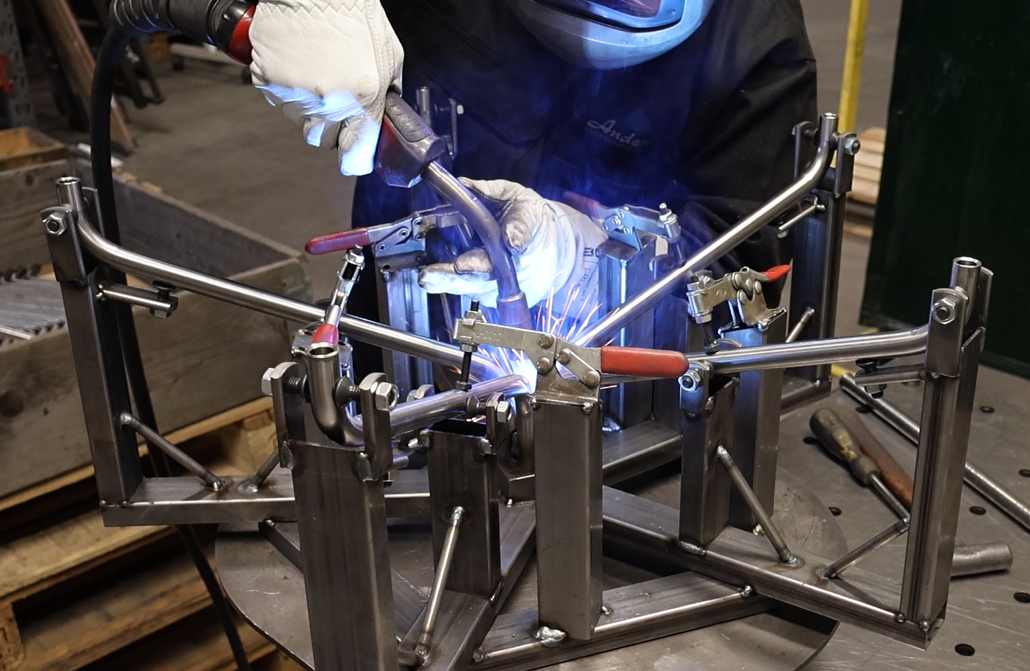 Det har blivit dags att presentera en ny avdelning i denna digitala rundvandring – och näst på tur står vår svetsavdelning. Det är här de bearbetade detaljerna börjar ta form. Utifrån det som tidigare var enskilda plåt- och rördetaljer, sammanfogas de här till den produkt det är meningen att det ska bli.