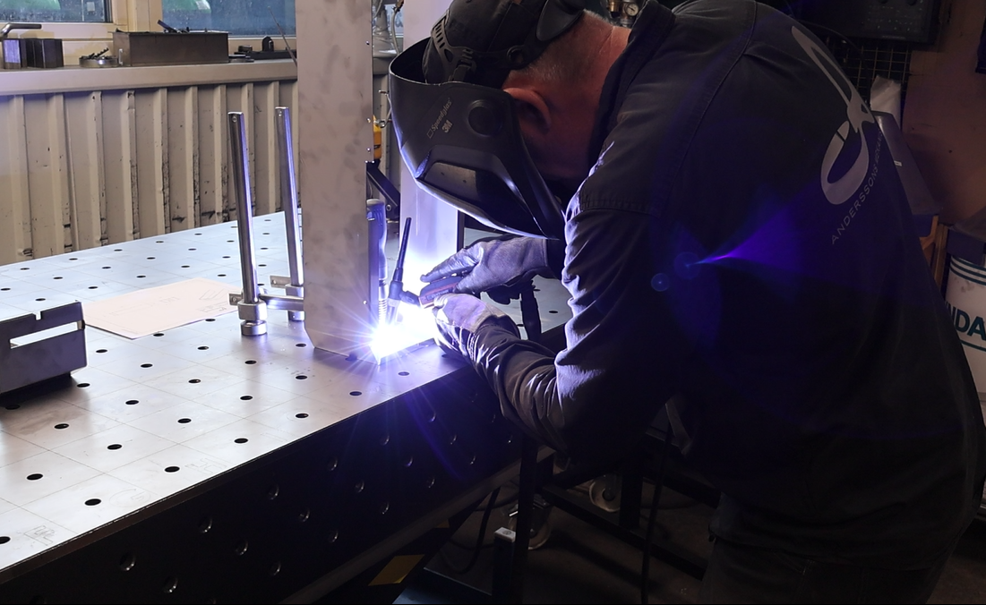 De manuella svetsstationerna är utrustade med svetsbord som är höj- och sänkbara. Det är inte bara bra ur den ergonomiska synpunkten, utan också för att det gör jobbet smidigare och bättre. Borden är utformade på ett sådant sätt att vi enkelt kan fästa våra redan tillverkade fixturer, eller bygga en fixtur direkt på svetsbordet med hjälp av de tillhörande verktygen. Eftersom bredden av kunder vi på Anderssons har nöjet att få arbeta är stor, är sällan det ena svetsjobbet det andra lik. Det kan handla om små komponenter som kräver millimeterprecision, eller stora konstruktioner som fyller upp hela svetsbordet och lite till. Tack vare den flexibla utrustningen kan vi anpassa oss utan att tappa tempo, och alltid leverera med samma höga kvalitet.