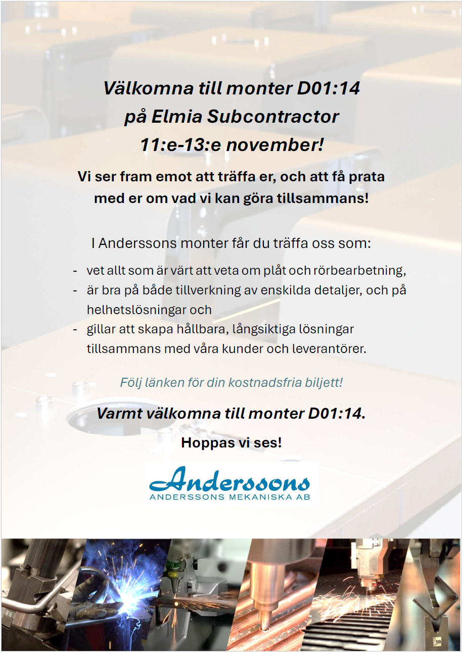Elmia Subcontractor 2023 är igång - Välkomna till monter D01:14